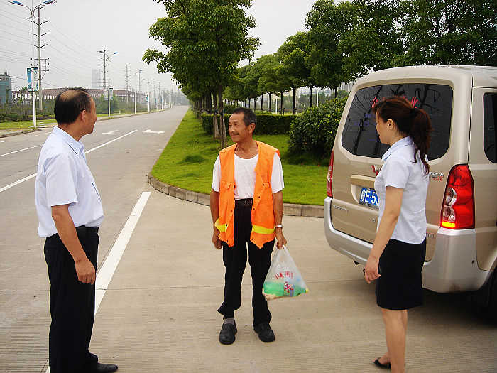 7月22日,由公司總經(jīng)理朱曉梅,黨支部書(shū)記、工會(huì)主席盛傳樹(shù)等成立的慰問(wèn)小組帶著防暑降溫用品來(lái)到來(lái)到當(dāng)涂縣經(jīng)濟(jì)開(kāi)發(fā)區(qū)管理處,對(duì)在高溫天氣下仍戰(zhàn)斗在第一線(xiàn)的員工標(biāo)示了衷心的感謝和誠(chéng)摯的慰問(wèn),并將防暑降溫用品親手送到每一位員工手中。