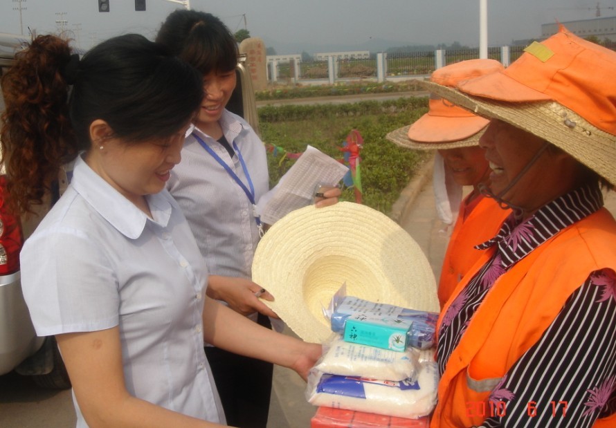 初夏來(lái)到,公司領(lǐng)導(dǎo)不忘辛勤工作在一線道路上的工人們。近日公司總經(jīng)理朱曉梅帶著降溫品前往慈湖開發(fā)區(qū),慰問(wèn)道路工作人員。