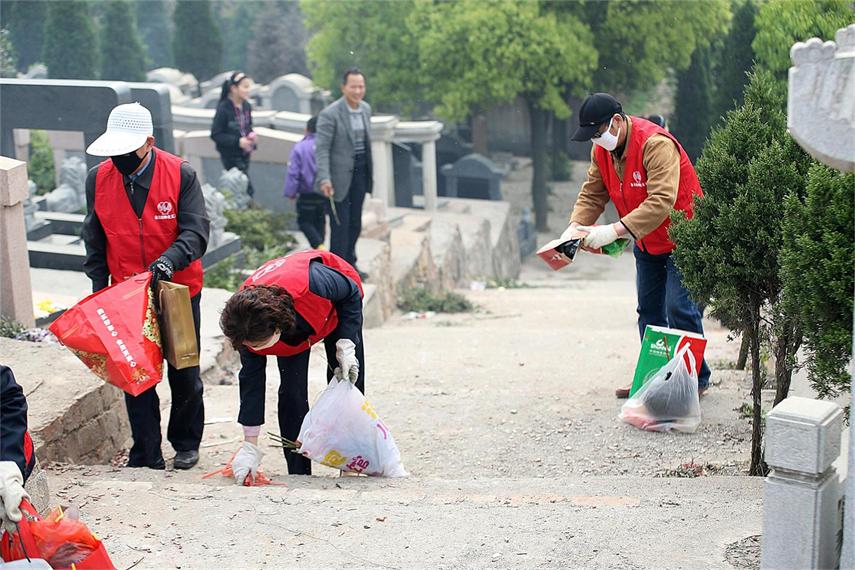 金太陽物業(yè)義工社4月5日早7點半,組織近40名志愿者前往丁家山進行義工活動,自義工社成立以來已與丁家山陵園多次合作組織這樣的活動,志愿者們放棄自己的休息來到這在墓地指揮交通、引導路線、清理垃圾,就是想用自己用自己微小的行動倡導市民“保護環(huán)境,文明祭祀?!?br /> “慎終追遠,不忘先人”是中國人的優(yōu)良傳統(tǒng),清明節(jié)是我國的傳統(tǒng)節(jié)日,人們會在清明緬懷逝者,祭祀祖先。然而傳統(tǒng)的祭祀主要以焚燒紙錢,燃放鞭炮等方式進行,容易導致紙錢亂飛,灰燼遍地,甚至會引發(fā)火災。更何況現(xiàn)在霧霾嚴重,我們更應該通過自己的力量還世人一個潔凈的環(huán)境。