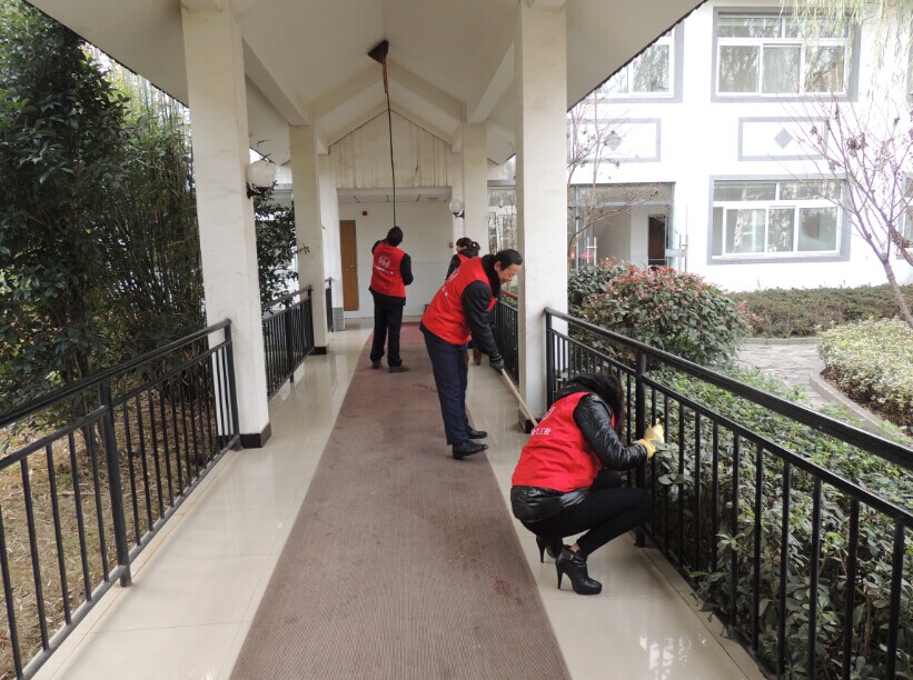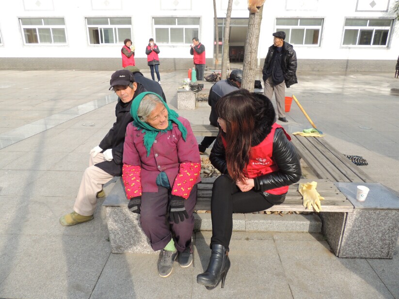 到了敬老院里,進行大致的分工后,就開始熱火朝天的忙碌起來。有的幫助擦玻璃,有的忙著打掃墻體欄桿衛(wèi)生,有的清理院內(nèi)樓內(nèi)的場地過道和綠化帶雜物,還有的義工為行動不便的老人打開水。雖然天氣干冷,但似乎毫不影響大家伙的干勁,經(jīng)過一個多小時的努力,將敬老院里外打掃的干干靜靜。之后在休息的時間,義工們?nèi)齼蓛傻馁r院里的老人聊天談心,回憶他們往年的崢嶸歲月,或是近期的樂呵事兒,在融洽祥和的氛圍中結(jié)束了此次的義工社之行。