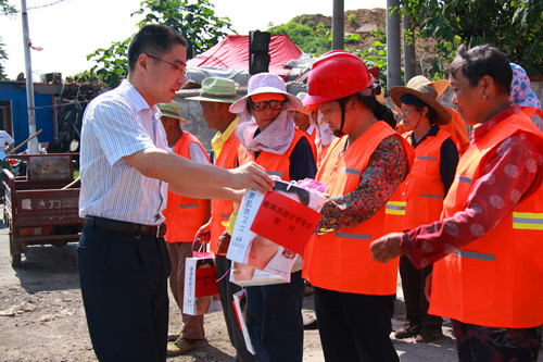 馬鞍山連續(xù)多日高溫酷暑天氣,為慰問在道路上辛勤工作的“道路美容師們”,馬鞍山市慈湖高新技術(shù)產(chǎn)業(yè)開發(fā)區(qū)管委會陳國雙主任、城市管理行政執(zhí)法局張霆鋒局長等領(lǐng)導于2013年7月9日下午來到慈湖道路慰問金太陽物業(yè)公司的環(huán)衛(wèi)職工,并為大家?guī)砹嗣?、肥皂、?qū)蚊水等防暑降溫品及慰問金。