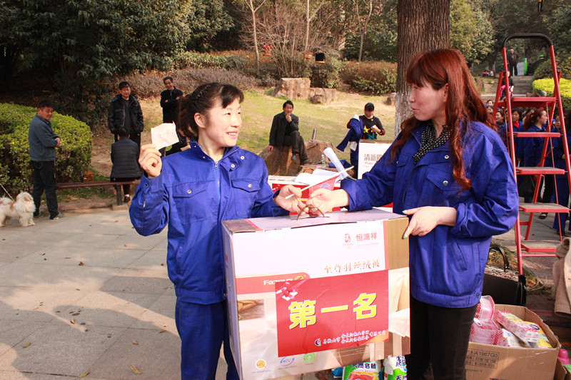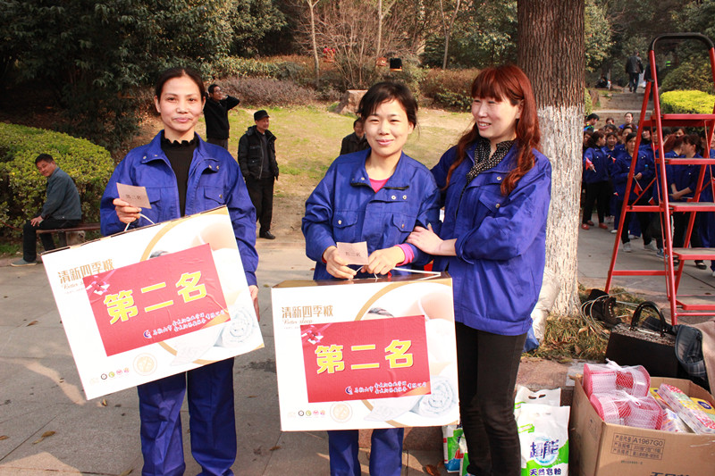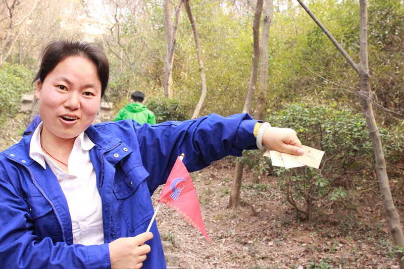 最吸引人的是山頂趣味尋寶活動,我公司工作人員一大清早就到山頂藏好“寶貝”,靜等尋寶人的到來。這次尋寶和往年不一樣,是等所有女員工集中后聽到哨聲后方可尋寶?!皣u”一聲,尋寶開始了,只見同志們有的在草叢和石頭下尋找、有的在窗臺石縫中查看,有的索性兩眼只看大樹,看看樹上有沒有“寶貝”。同志們拿出工作中鍛煉出來的眼力與細心,各顯神通,熱火朝天的找尋著。尋到寶的同志們歡呼雀躍,興沖沖地下山兌獎。沒尋到寶的同志雖然有些失落,但公司也為她們準備了紀念品。