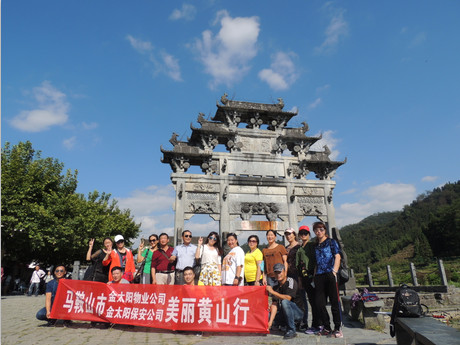 為激勵(lì)公司員工工作熱情,緩解工作壓力,增進(jìn)各職能部門的協(xié)作精神,金太陽物業(yè)集團(tuán)于2017年9月16日至17日組織管理人員“黃山二日游”活動(dòng),本次活動(dòng)由朱曉軍經(jīng)理擔(dān)旅行隊(duì)隊(duì)長,十六名管理者熱情參與。 16日清晨,旅行隊(duì)整頓行裝從公司啟程,經(jīng)四個(gè)小時(shí)的車程到達(dá)了黃山黟縣,午間聚餐后,大家一掃旅途中坐車的疲憊,正式開始游覽行程。