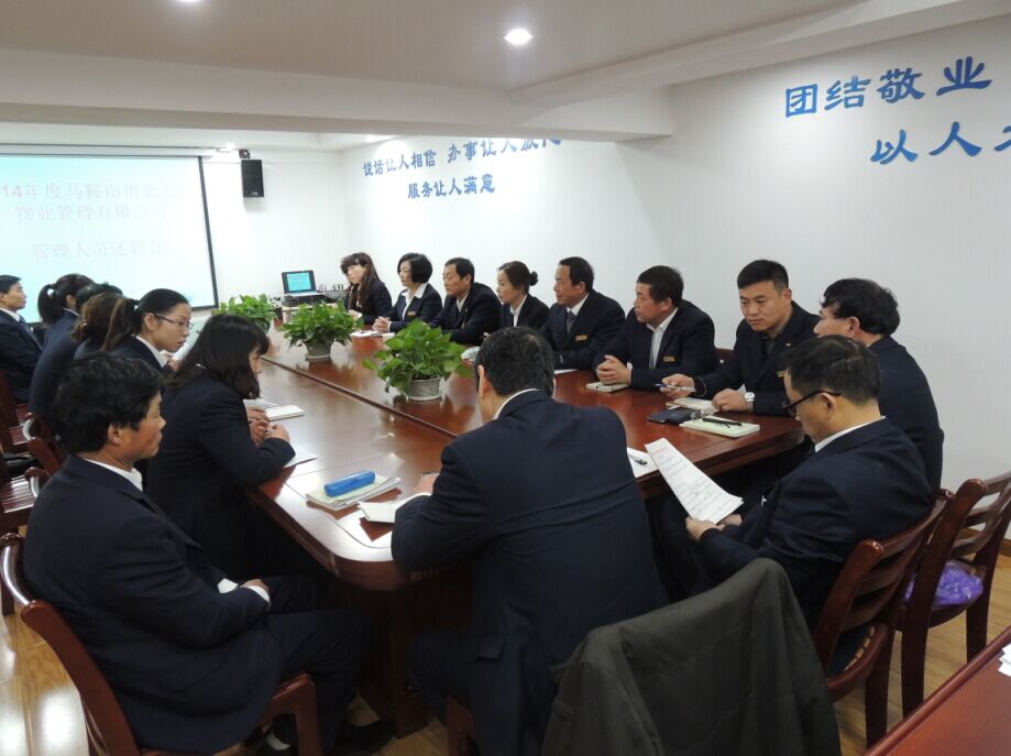 2015年1月31日下午,馬鞍山市金太陽物業(yè)管理有限公司召開2014年度管理人員述職大會,本次會議由董事長朱曉梅主持,包括執(zhí)行經(jīng)理、副總經(jīng)理、各管理處主…
