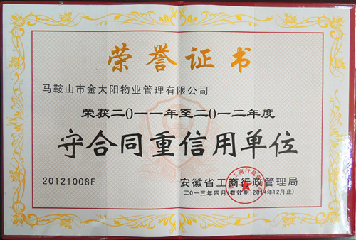 金太陽物業(yè)公司是全市唯一一家榮獲此榮譽的物業(yè)公司。