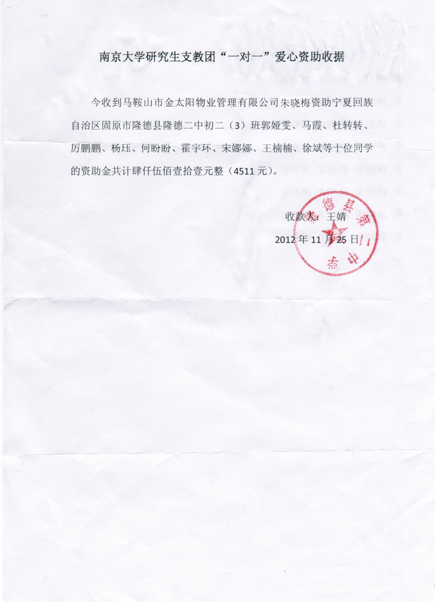 近年來,金太陽物業(yè)董事長朱曉梅針對寧夏回族自治區(qū)固原市隆德縣隆德二中助學(xué)項目進(jìn)行愛心資助,并在公司設(shè)立有慈善助學(xué)基金專戶。每年都會按時將資助款…