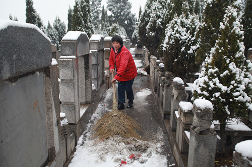 冬至陵園工作 保潔保潔人員彰顯金太陽(yáng)人風(fēng)采